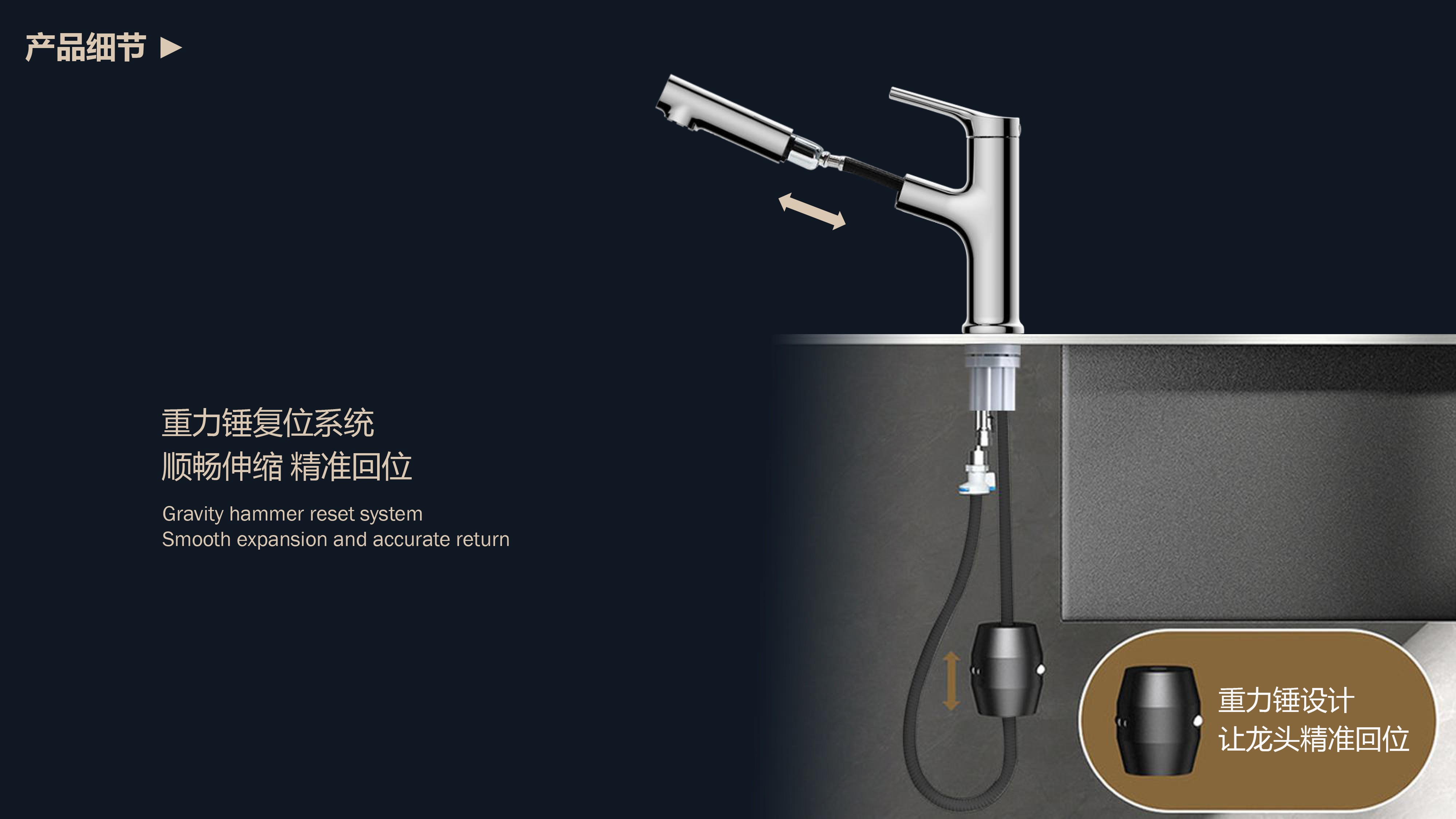出水溫度實時看得見,解鎖龍頭舒適用法;抽拉范圍廣,360°全方位清洗;日常洗頭利器,龍頭抽拉出水輕松洗;氣泡水有效防濺,柔和親膚,潔凈省水;重力錘復位系統(tǒng),順暢伸縮,精準回位